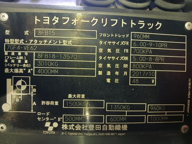 NO.1363465 TOYOTA FORKLIFT (Battery)