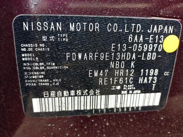 NO.1382500 NISSAN NOTE