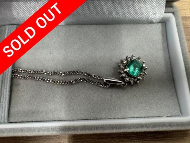 Pt900 platinum emerald pendant necklace with diamonds, 6 g.