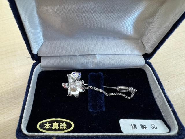 Brooch featuring a design made with genuine pearls and silver.